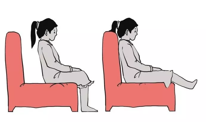第一,膝盖和屁股保持水平。过低会让整个身体埋陷在沙发里,造成髋关节形成锐角,导致背部压力过大。