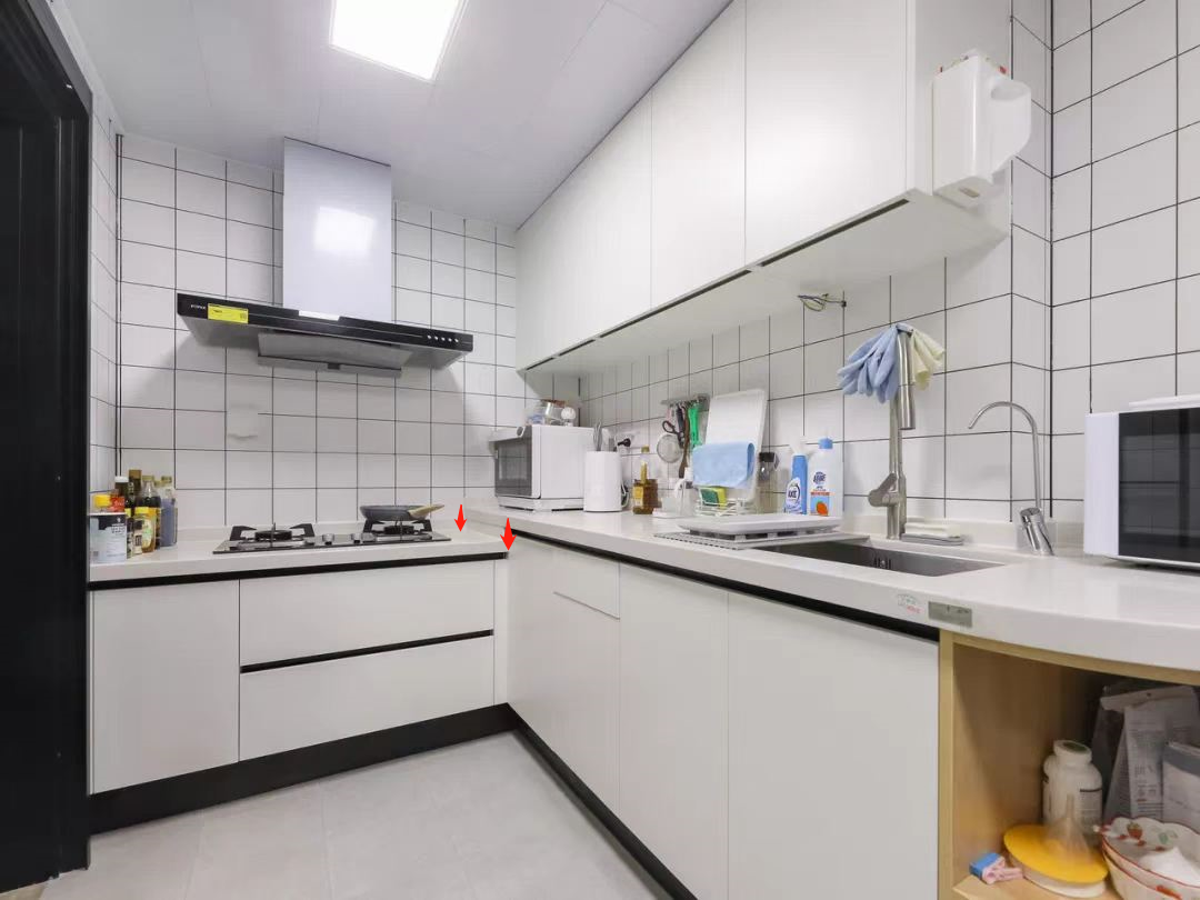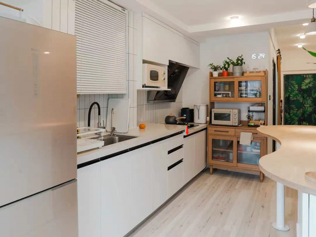 确定好台面高度后,再用这个数值减去8-10cm,就是灶台的高度,也就是我们常说的高低台面。