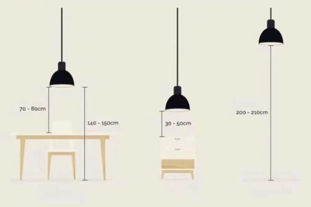 如果餐桌上方有吊灯,建议吊灯距离餐桌70cm左右。