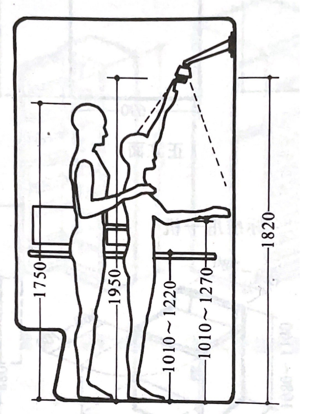 花洒分为暗置花洒与明装花洒两种类型,一般暗置花洒墙面暗埋出水口中心,距地面应为2.1米,淋浴开关中心距地面最好为1.1米左右。